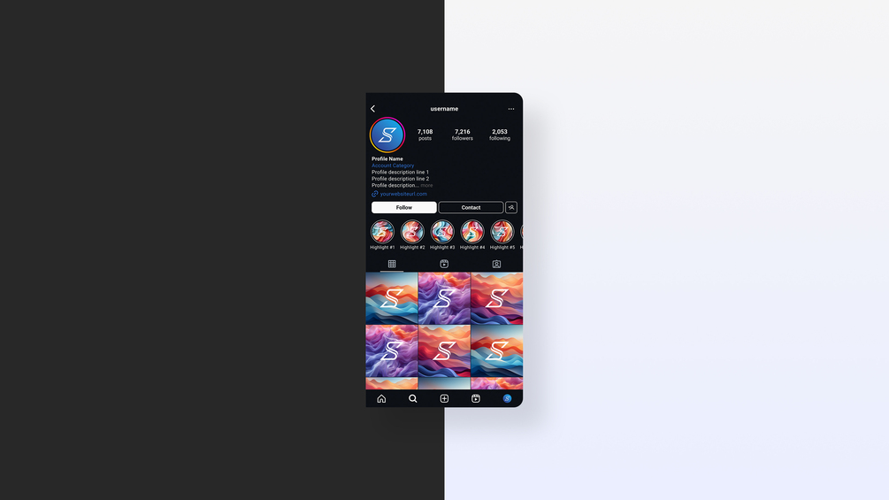Here's a fully customisable Instagram profile page mockup PSD file in both light or dark mode variants, making it easy to visualise your profile concepts in seconds.