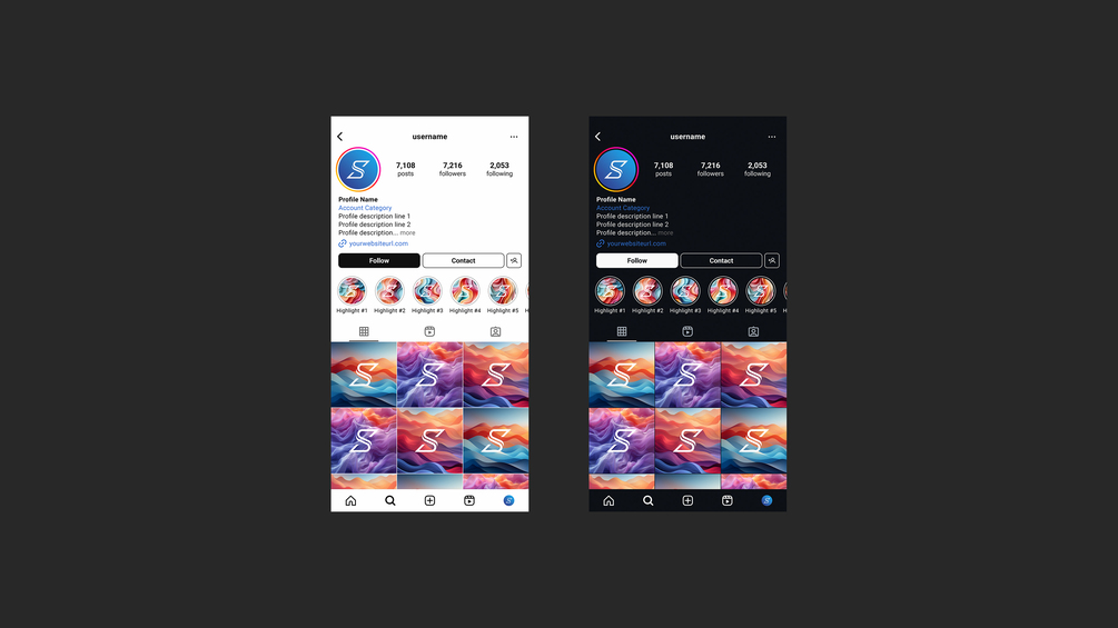 UI Mockup - Instagram Profile Page - Light & Dark Mode - PSD File