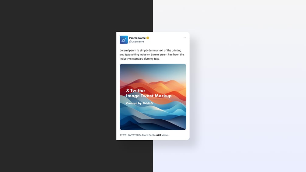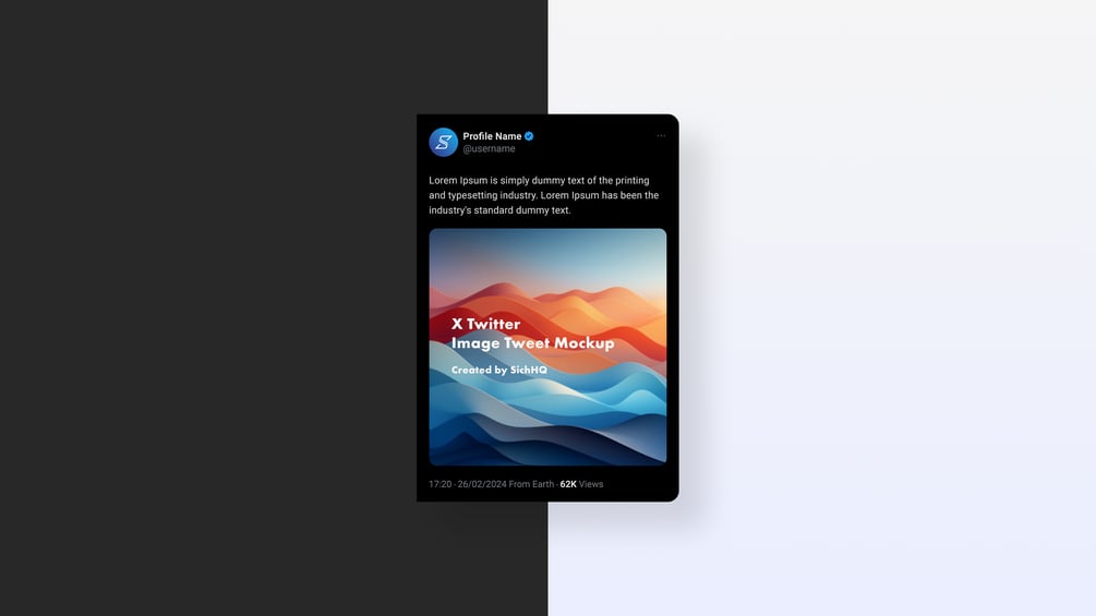 Here's a fully customisable X / Twitter square image tweet mockup PSD file in both light or dark mode variants, making it easy to visualise your profile concepts in seconds.
