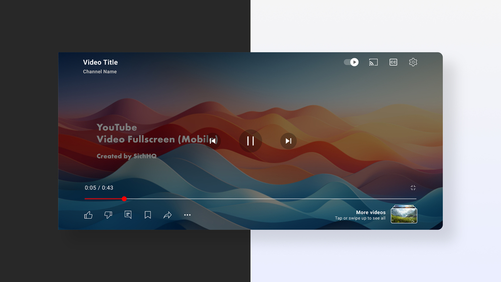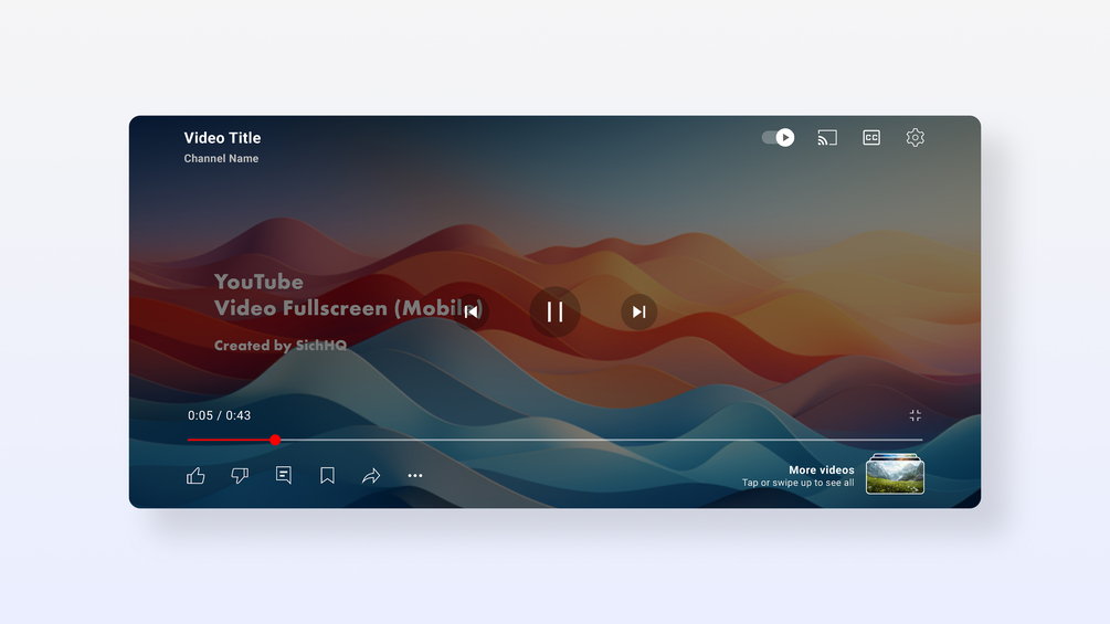 UI Mockup - YouTube Video Fullscreen (Mobile) - PSD File